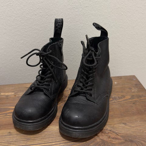 Myydään uudet, ihanat, kirkkaan turkoosit (wild aqua) Dr Martens maiharit. Koko 26. Perheen nuoremmille tarkoitetuissa Dr. Martensin nahkaisissa maihinnousukengissä on täysin sama siluetti kuin aikuisten versiossakin mutta joustavampi ulkopohja on parempi kasvavalle jalalle ja vetoketjukiinnitys pienemmille sormille. Klassiset elementit kuten varren tekstikuvioitu vetolenkki, keltaiset tikkaukset ja 8-reikäinen nauhakiinnitys päällisessä täydentävät ilmeen. Nämä sopivat pienille kapinallisille. Savuttomasta kodista. Postikulut 9euroa. En käytä ToriDiiliä.