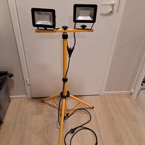Hyvä vähän käytetty uudenveroinen työmaavalaisin. 38W. 2 metrin kumikaapeli shukopistotulpalla. Säätöjalka, valaisin voidaan kohdentaa eri asentoihin, ja myös tarvittaessa kiinnittää vaikka seinälle. Nyt tarpeettomana minulle, myyn 5 euroa. Voin lähettää postitse.