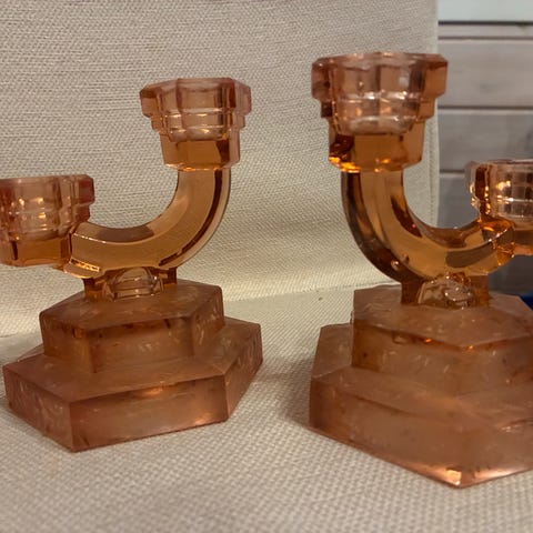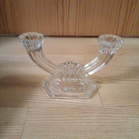 Art Deco kristallikynttilänjalka pari. HP 35 € yht. + pk/nouto Tampereelta, sopimuksen mukaan.