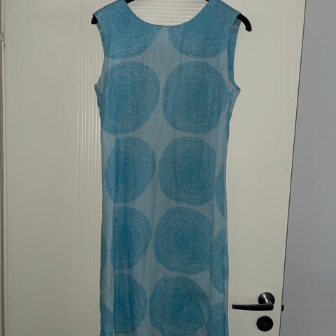 Myydään kuvan mukainen käytetty Marimekko 100% pellavamekko koko 42, takana vetoketju ja 2 sivutaskua, 65