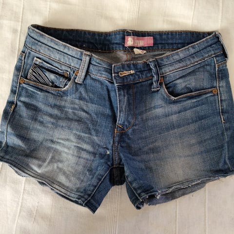 Siniset Farkku Shortsit, koko 38/40,(tarkista mitat), edessä vetoketju, nappi, taskut, takana taskut, vyön lenkit, vyötärön mitta 35.5cm edestä mitta, puntin mitta vyötäröltä puntin suuhun 33cm, ehjät.