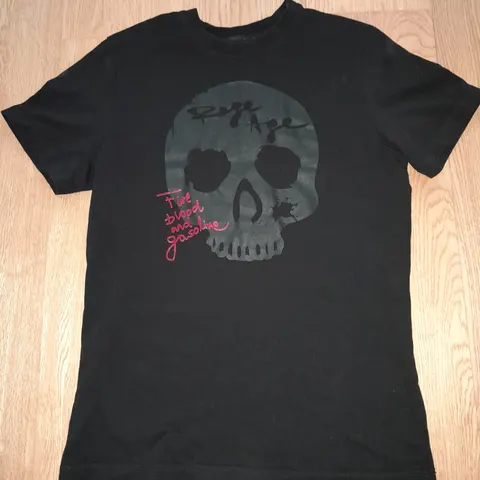 Judas Sinned merkin tyylikäs ja todella yksityiskohtainen printti-t-paita, jossa iso pääkallokuvio selässä mustilla kiiltävillä helmillä tehtynä. Lisäksi mustaa ja pinkkiä teksiä ympäriinsä ja edessä brodeerattu risti. 100% puuvillaa.