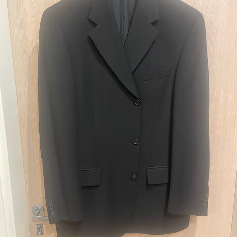 Myydään lähes uuden veroinen musta miesten puku. Housut kokoa 46 ja takki kokoa 48. Käytetty 2 kertaa juhlissa. Puku ostettu alunperin Haloselta.
