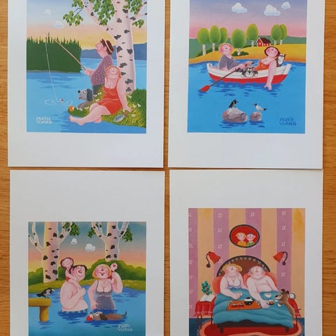 Heli Laineen käyttämättömiä postikortteja Raumalaista pitsiä raumalaisin fraasein.