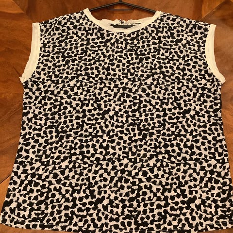 Kaunis, musta pusero jossa pieniä, erivärisiä flamingon kuvia. 3/4 hihat. Avara pääntie. Pääntiessä, hihansuissa ja helmassa joustolanka. Musta vuori. Takapituus 60 cm. Kainalo-kainalo 132 cm. 95 % viskoosi/ 5 % elastaani. Postimaksu 7,90e.
