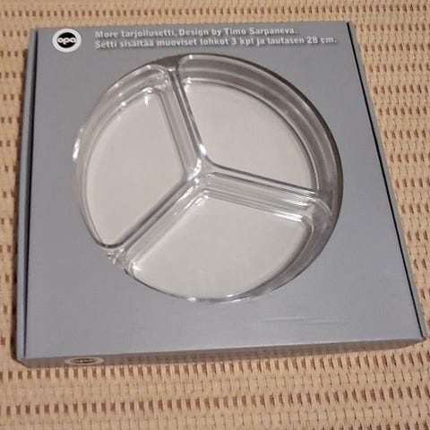 OPA More tarjoilusetti / lokerikkolautanen, Design by Timo Sarpaneva. 30 €.
