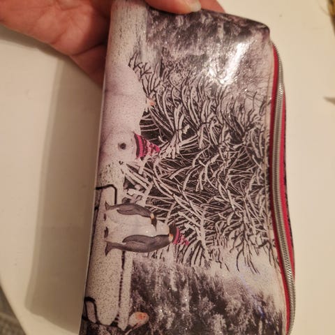 Myydään käyttämätön Ted Baker meikkilaukku,väri metallin viininpunainen. Korkeus n. 15cm , pohjan koko 20x7 cm.