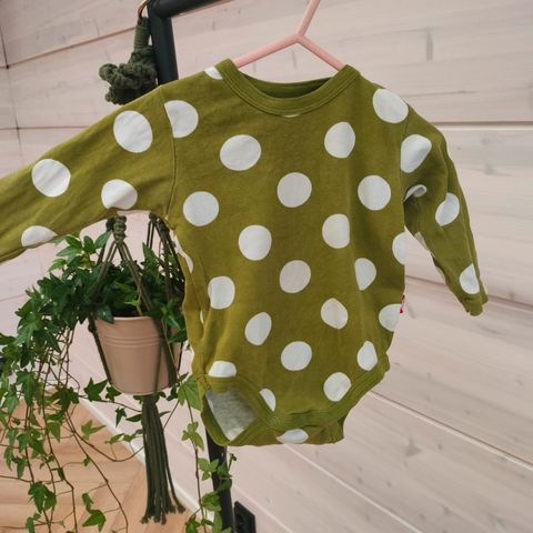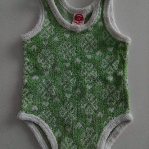 Myydään hyväkuntoinen, kirkkaanvihreä Tutta auto body. Koko 68cm. 100% puuvillaa. Nepparit pääntiessä helpottavat pukemista. Savuttomasta kodista. Postikulut 8euroa. En käytä ToriDiiliä.