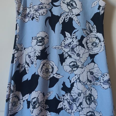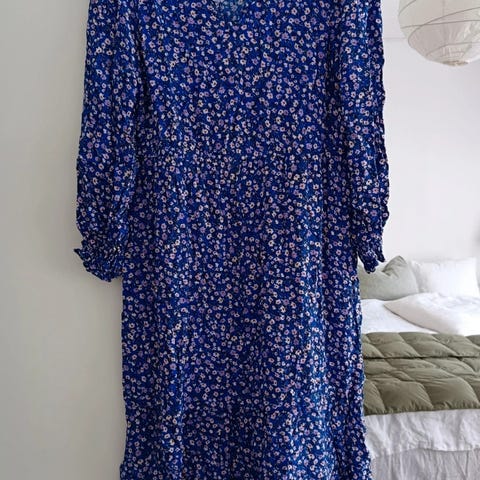 Uusi tummansininen kukkamekko etunapitus aukeaa kokonaan joten käy vaikka jakkuna ja jota ei tarvitse paljonkaan silittää, joten on sellainen huoleton pese ja pidä mekko. Nouto tai + postipaketti S 8,90 euroa.