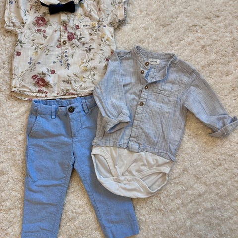 ruusucollege ja housut k 80 15 e, collegetakki luumu k 80 8 e.