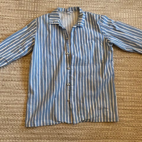 Marimekko Jokapoika-paita, 150cm. Tsin/valk raita. Muuten täysin ehjä ja puhdas, mutta hihassa pieni korjattu reikä, kts. kuva. Tämä huomioitu hinnassa. Yleisilmeeltään kuitenkin siisti.