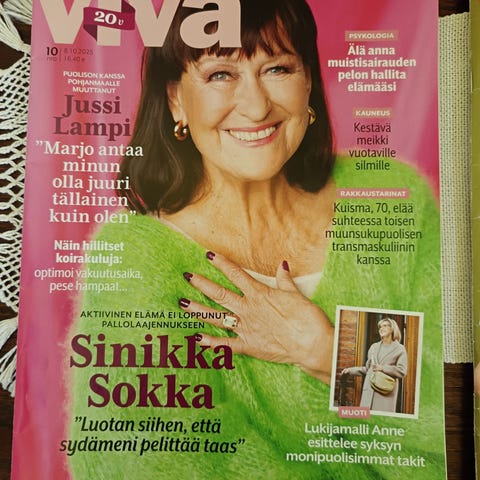 Myyn kuvanmukaisen lehden Viva 2.11.2022. Lehti on uudenveroinen. Hinnan lisäksi postikulut tai nouto Ruoveden keskustasta.
