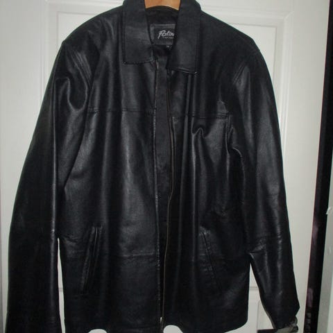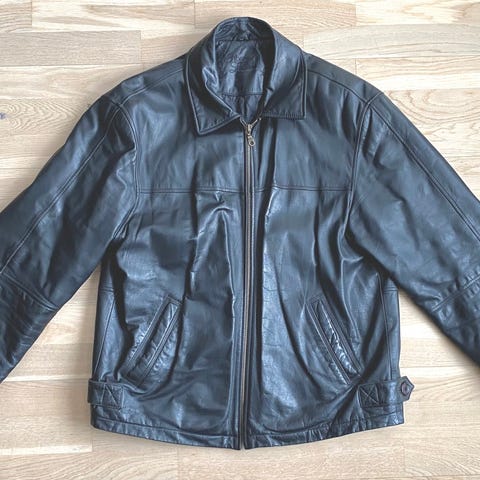 Myydään hyväkuntoinen miesten musta nahkatakki.