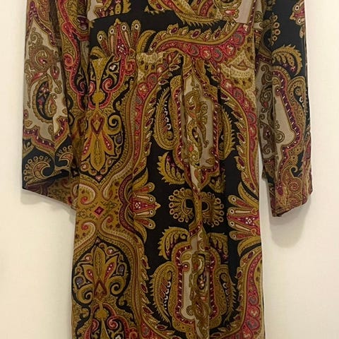 Naisten mekko. 100% viskoosi. Pituus 130 cm. Kainalo-kainalo 52 cm. Koko M-L. Uusi, käyttämätön. Hintalappu kiinni. Savuton ja eläimetön talous. Nouto tai postitus.