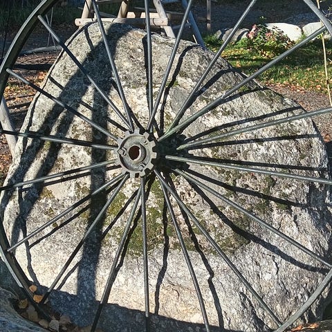 Vanha kärrynpyöränkeskiö. Lamppuna toiminut.