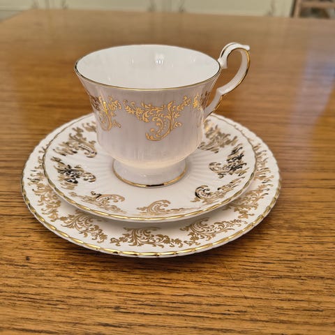 Sekä kupit,aluslautaset ja voileipä lautaset.