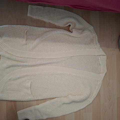Myydään hyväkuntoinen Onlyn naisten luonnonvalkoinen neuletakki. Koko XS.