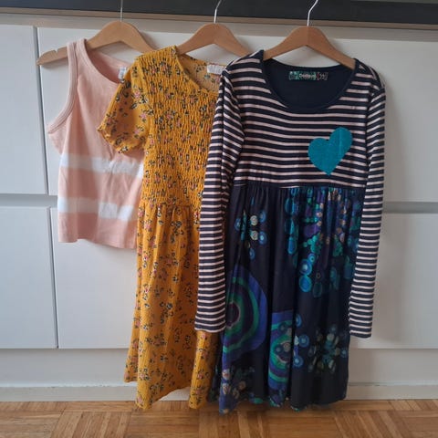 Kuvassa näkyvä mekko myytävänä. 9/10, 134/140 cm.