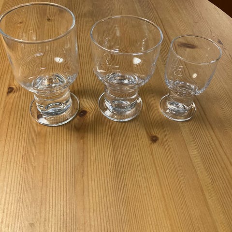 2 kpl jalallista Heikki Orvolan Nuutajärvelle suunnittelemaa Mimi lasia. Molemmissa laseissa kupla reunassa. Merkitty kuvaan ympyröimällä. Lasien korkeus 7cm, suun halkaisija 5cm. Hp yhteensä 4,- + pk (Toridiilillä) tai nouto Lohja. mmm