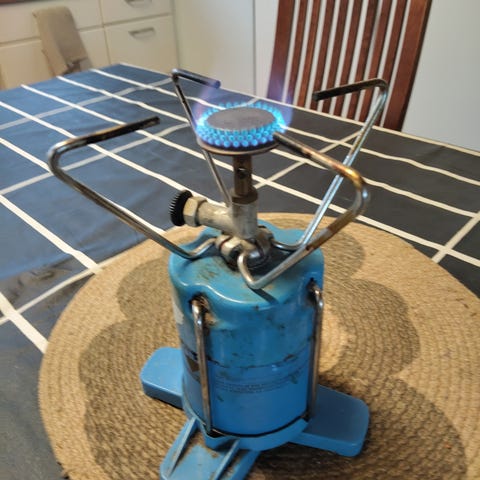 Kuvanmukainen retkikeitin kaasupatruunalle.