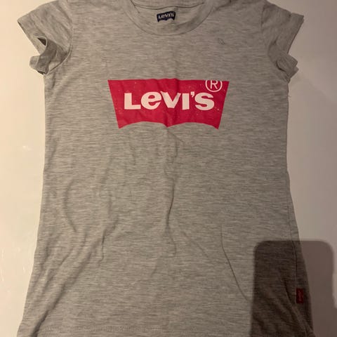 Valkoinen Levi’s t-paita koossa 8. Eli 128cm. Ehjä. Edessä kaksi tahraa, joita en ole yrittänyt poistaa. Pituus 47, leveys 33 cm.