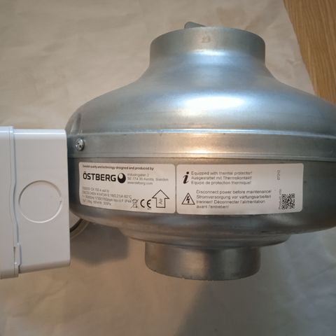 Kanavapuhallin Östberg 7000030 CK 100A ja 100/125 mm:n ilmanvaihtoputkistoa