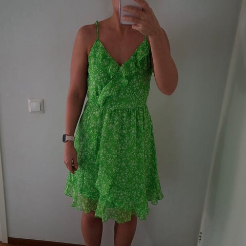 Myydään Vero Modan hyväkuntoinen mekko, koko s, ylhäällä smokkirypytys ja helma alaspäin levenevä. Väri vaaleanvihreä-valkoinen. Hajusteeton koirakoti.