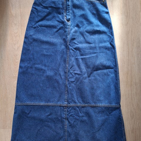 Sininen farkkuhame, kokonaispituus 55cm. Takana halkio.