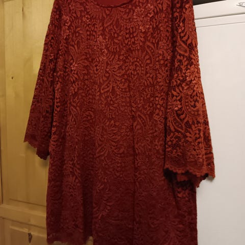 Ohuehko neule 60% viskoosi, 40% polyamidi. Etuosa pitsi. Muuten sileä neule. Koko 50, kai- kai 67 cm, hiha 53 cm, hartia 46 cm, pituus 70 cm. Käyttämättä jäänyt Cellbes pusero. Nouto tai postitus 8,90€