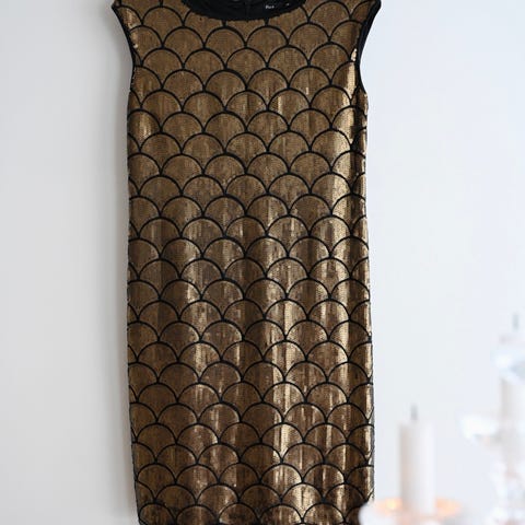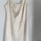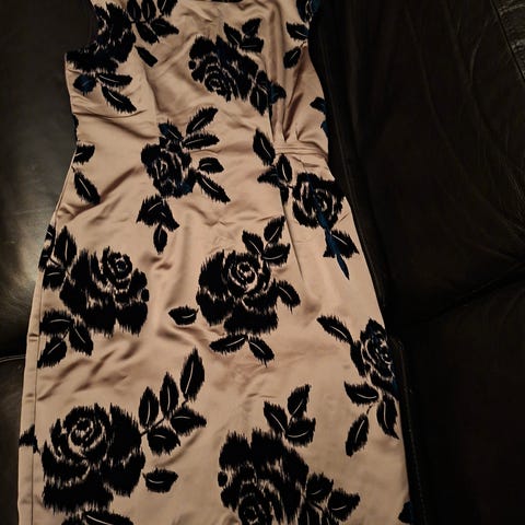Sand merkkinen kotelomekko. Vetoketju sivussa. Puuvillasatiini mekko. Kerran käytetty juhlissa.