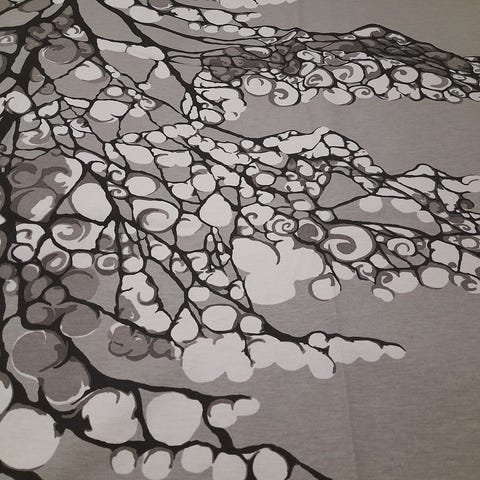 Vallilan verho Luontoplku Luxus. Kokeiltu ikkunaan, ei sopinut.