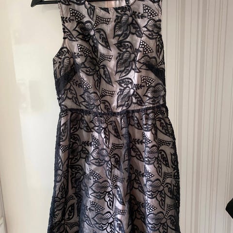 Myydään kaunis tummansininen Naf Nafin mekko, jossa on valkoisia palloja. Mekon koko on 34.