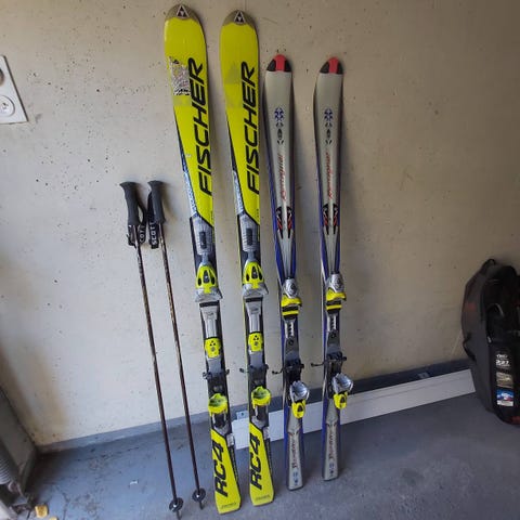 Atomic pujottelusukset pituus 210 cm, hyvät monot koko 47 yhteishinta 245 €