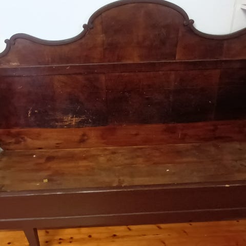 Leikkimökkikäytössä ja satunnaisen yövieraan käyttämä vanha sänky. Tuo ”tyynyosa irrallinen erillinen. Itseverhoiltu. Pölyinen. Koko noin 180x70x45. Ei enää nukkumiskäyttöön ihmisille mielestäni soveltuva.