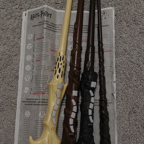 Myydään Voldemortin sauva, joka toimii pattereilla. Pitää ääntä ja vilkuttaa valoja. Hyvä toimiva kunto.