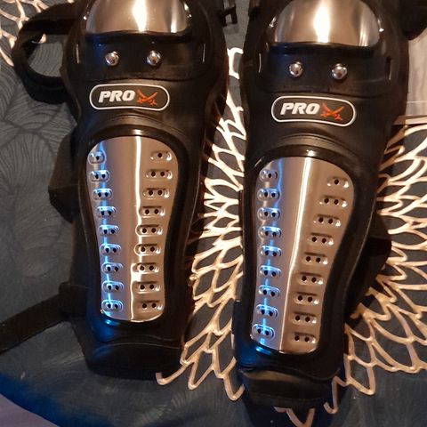 Keltaiset / mustat polvisuojat motocross harrastukseen. On jo käytönjälkeä. Jotain pehmusteita pitäisi liimailla takaisin paikoilleen. En näe suojuksissa mitään kokoa tai merkkiä. Nuorelle miehelle ainakin menee. Polvisuojat / säärisuojat jollekin hurjapäiselle mopoilijalle. Muovia ja kangasta. Joustavat ja leveät kuminauhat on kiinnitykseen.