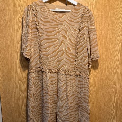 Myydään Mos Mosh -merkkinen Lori Cannes mekko. Valkoinen pohja, kultaiset yksityiskohdat. Sivuissa taskut. Materiaali viskoosi.