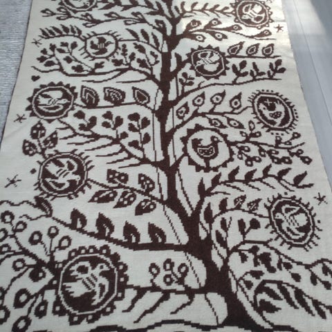 1kpl 130cm ja 225 pitkä verho tankokujalla, jossa materiaalina puuvilla ja on Fairtrade -merkillä varustettu. Limen vihreä pohjaväri, jossa tukaanin kuvia. Löytyy myös saman sarjan tyynyliina ja pussilakana ja nämä myydään siis settinä. Retro vintage