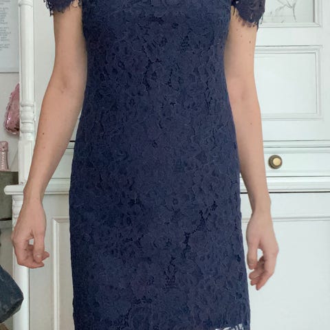 Kuvan uutta vastaava juhlamekko. Pitsi tukevaa kunnollista pitsiä.
