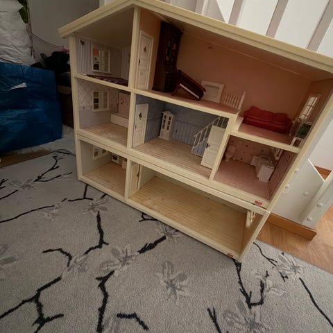Nukketalo Lundby Dallas, etuovi tulee mukaan. Sähköt toimivat.