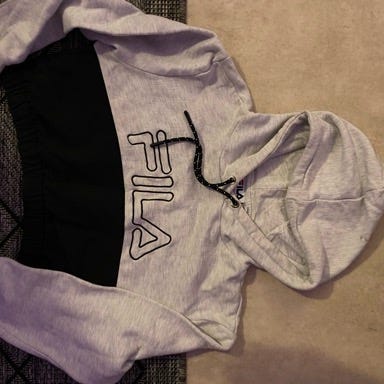 Fila crop tyyppinen huppari. Ei ole käytetty. Koko S/10. Väri harmaa beigehtävä