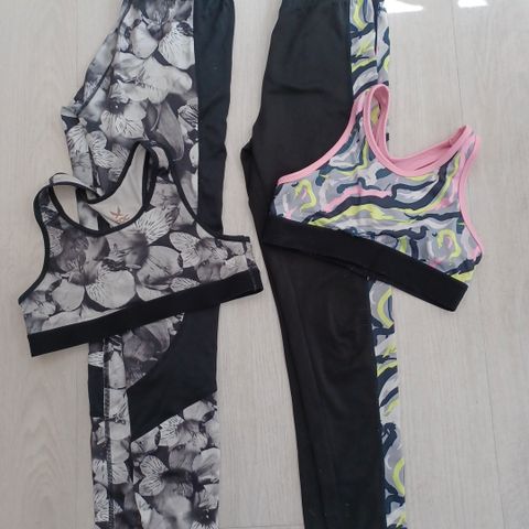 Urheilupaketti jossa uudenveroinen Adidas tekninen paita, toinen urheilupaita ja pitkat mustat legginsit, yht. 9e.