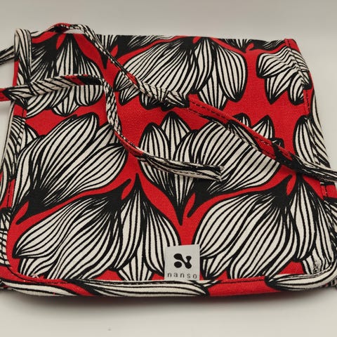 1) Nanson tukeva markiisikankainen kassi, koko 51 x 40 x 7cm + sanka 25cm korkea, vähän käytetty, käsin pesty, Hinta 9eur