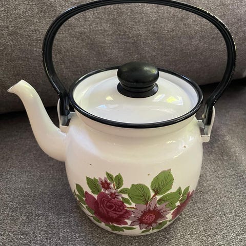 Finel punainen kahvipannu. Harry Moilanen on suunnittelija tuotannossa 60 luvulla.