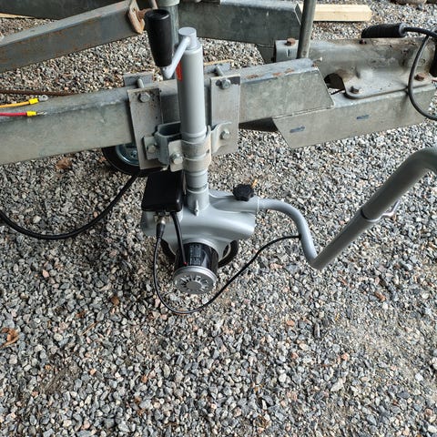 Akkukäyttöinen nokkapyörä venetraileriin, paljukärryyn, asuntovaunuun tms.