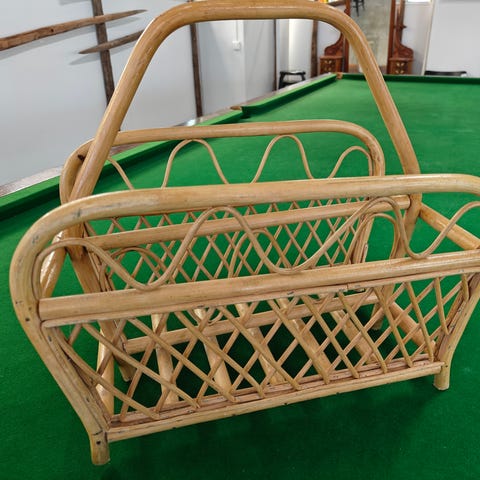 Rottinkinen tukeva lehtikori, leveys 40cm, kokonais korkeus 44cm, ja sisäosan korkeus 20cm.