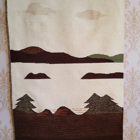 Myydään Kainuun Pirtti Oy:n raanu Rantamaisema. Design Salme Tervonen 40 euroa. Sekä halutessasi rautainen ripustus "henkari" 20 euroa