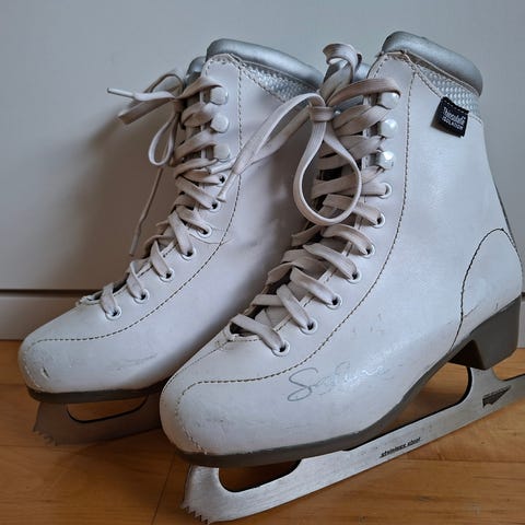 Kuvassa olevat kaunoluistimet kokoa 35. Käytönjälkiä, ei haittaa käyttöä. Hyväkuntoiset terät. Nouto tai postitus. Kulkeutuu myös Turkuun omien menojen mukaan.