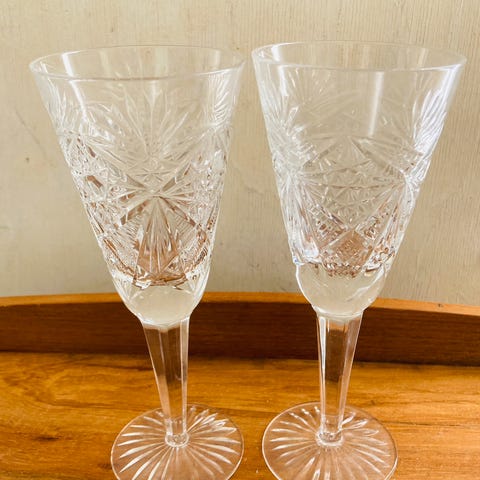 12 kappaletta täysin virheettömiä kristallisamppanjalaseja 1990-luvulta. Korkeus noin 21 cm.