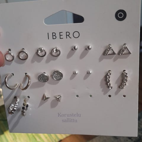 Myydään erilaisia korviksia. Suurin osa on käyttämättömiä. Merkitty (X) korviksien perään. Muita on pidetty kerran, pari. Kaikki korvikset on pyyhitty desinfiointipyyhkeellä. Ostaessasi korviksia, ilmoita mistä pussista, mikä numero ja millaiset korvikset haluat ostaa.